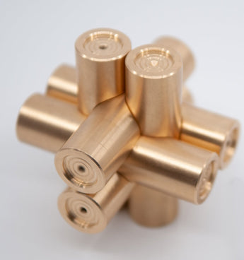 BMSD weighs around 730g (1.6 lbs). Each piece is 70mm long and has a diameter of 19mm. This is a puzzler's puzzle. Perfect for fooling those who think they have seen it before. It looks like a standard interlocking Burr. It isn't. It makes a perfect sextet with its five predecessors and completes the set.
